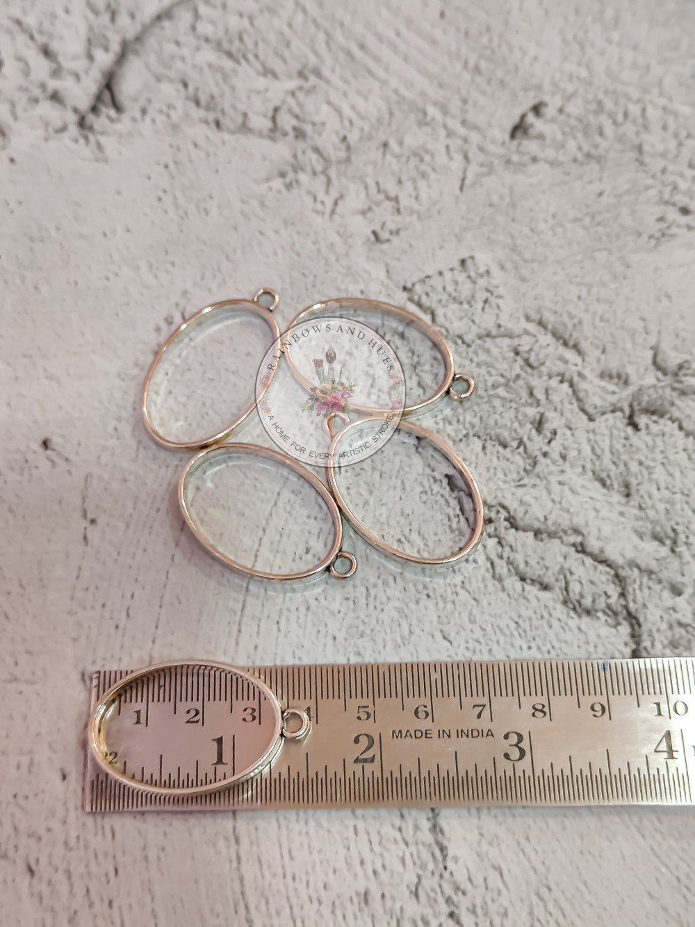 1. Material: Metal, Size : L : 4cm, W: 2cm, Thickness :2mm, Color : gold, Pack Contain 10PC Metal only Silver OVAL.