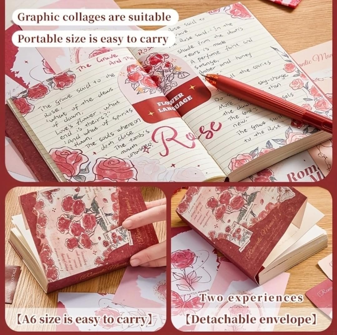 - This Journal kit includes : 1) A6 notebook diary – 1 2) Memo pad – 60 pcs 3) Decorative paper – 10 sheets 4) Background paper – 10 sheets 5) Post card – 3 pcs 6) Decorative sticker – 10 pcs 7) Decorative card – 10 pcs 8) Daily sticker – 31 pcs 9) Paper photo frame – 10 pcs 10) Washi stickers – 10 sheets 11) Letter paper – 3 12) Envelopes – 3 13) Washi Tape roll – 2 pcs.